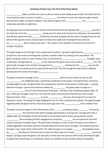 A Christmas Carol Stave 2 Summary Fill In The Blanks Teaching Resources