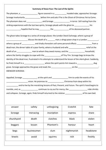 A Christmas Carol Stave 3 Summary Fill In The Blanks Teaching Resources