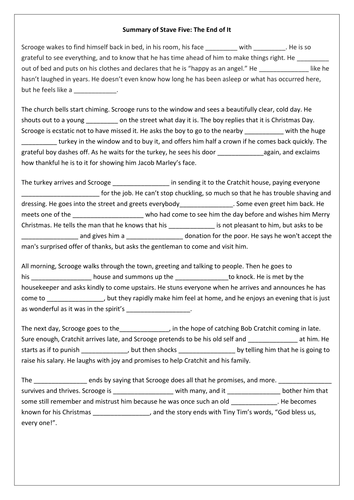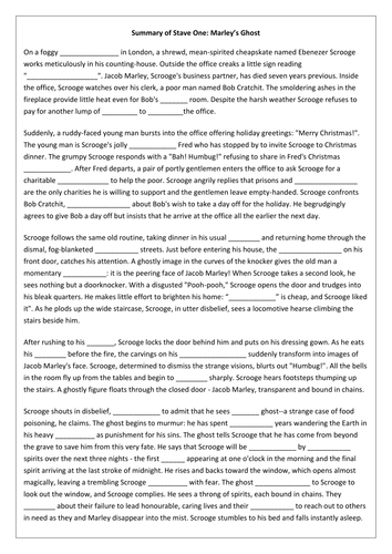 A Christmas Carol Stave 1 Summary Fill In The Blanks Teaching Resources