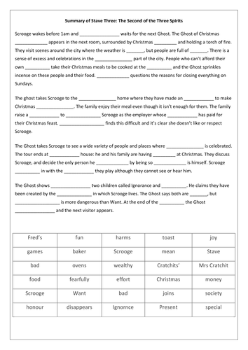 A Christmas Carol Stave 1 Summary Worksheet Teaching Resources