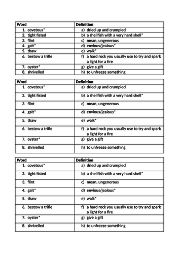 A Christmas Carol Vocabulary Pre Teach Word Challlenge Definitions For Scrooge Teaching Resources