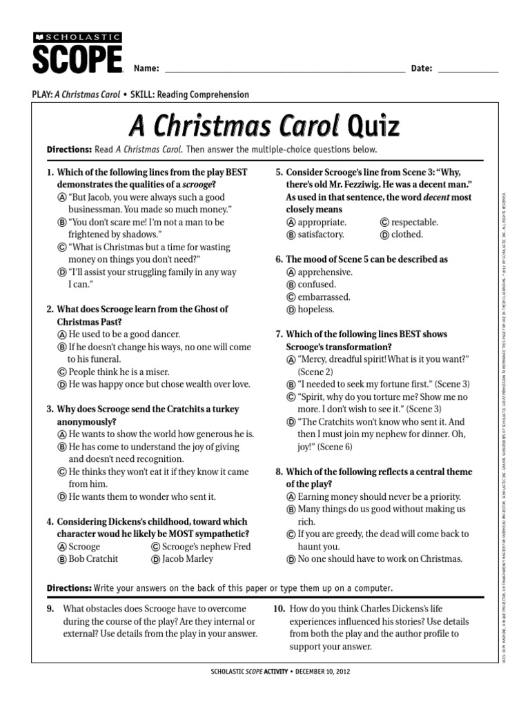 Monday December 14 2015 A Christmas Carol Quiz