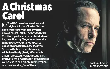 Adding another yule log to the fire fx just unveiled its dark toned a christmas carol with guy pearce memento as scrooge sprinkled with f bombs and bloody images. Find out when a christmas carol is on tv including series 1 episode 2. A christmas carol is a 55 minute drama fantasy mini series starring guy pearce as ebenezer scrooge guy pearce as ebenezer scrooge and andy serkis as ghost of christmas past.